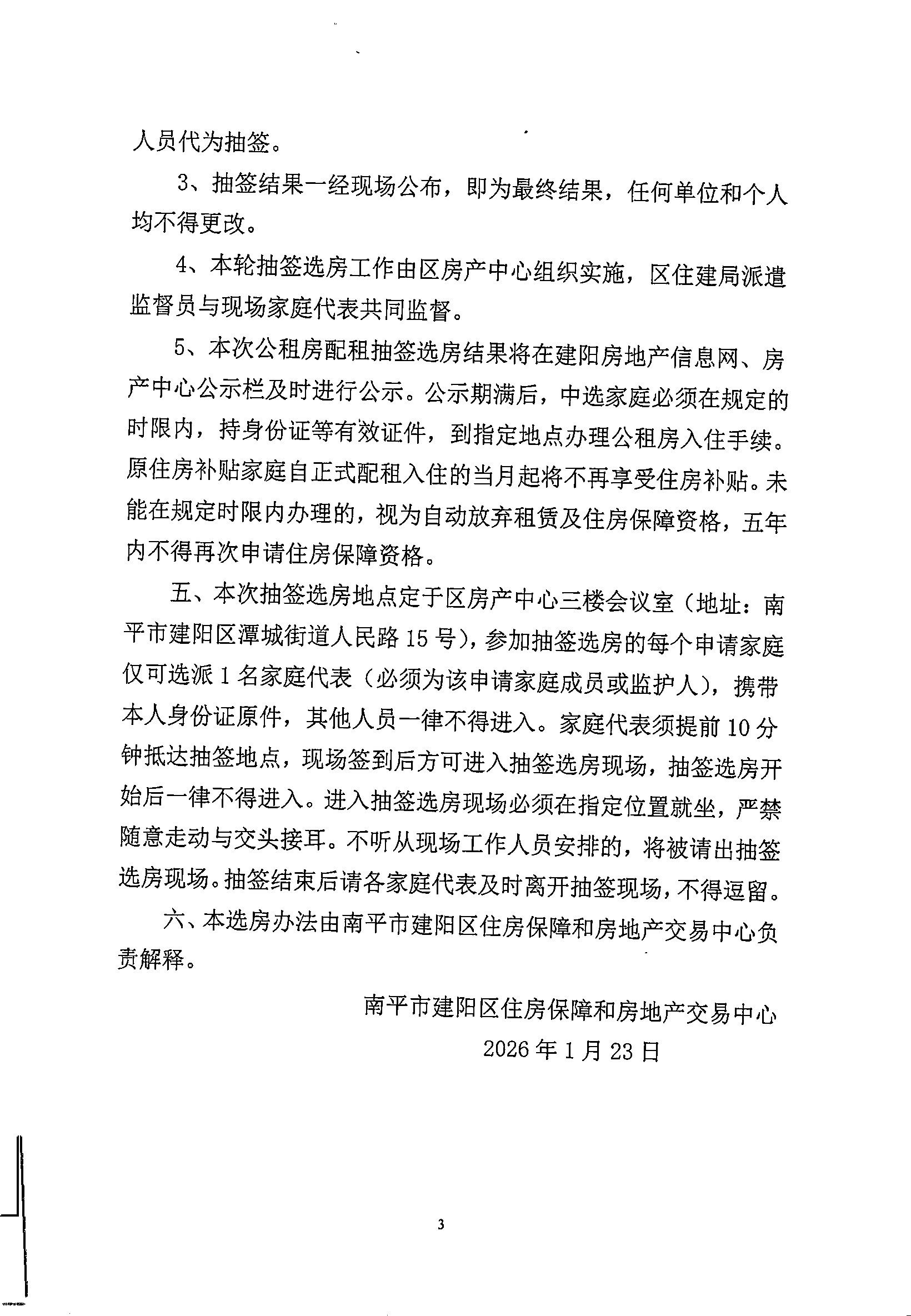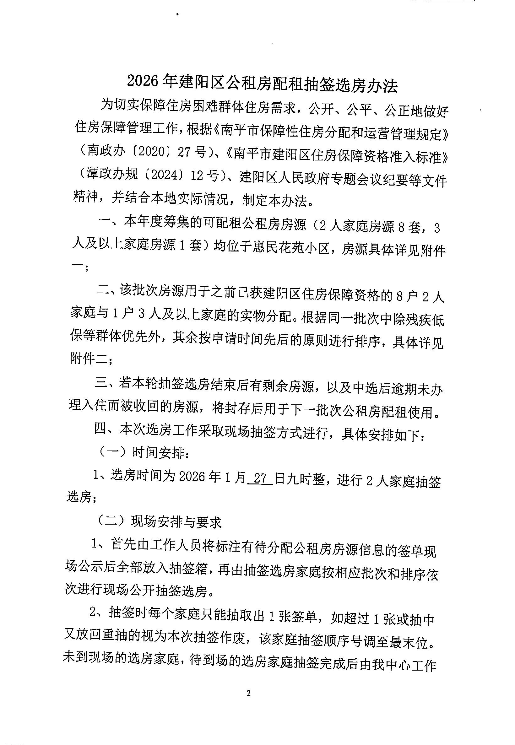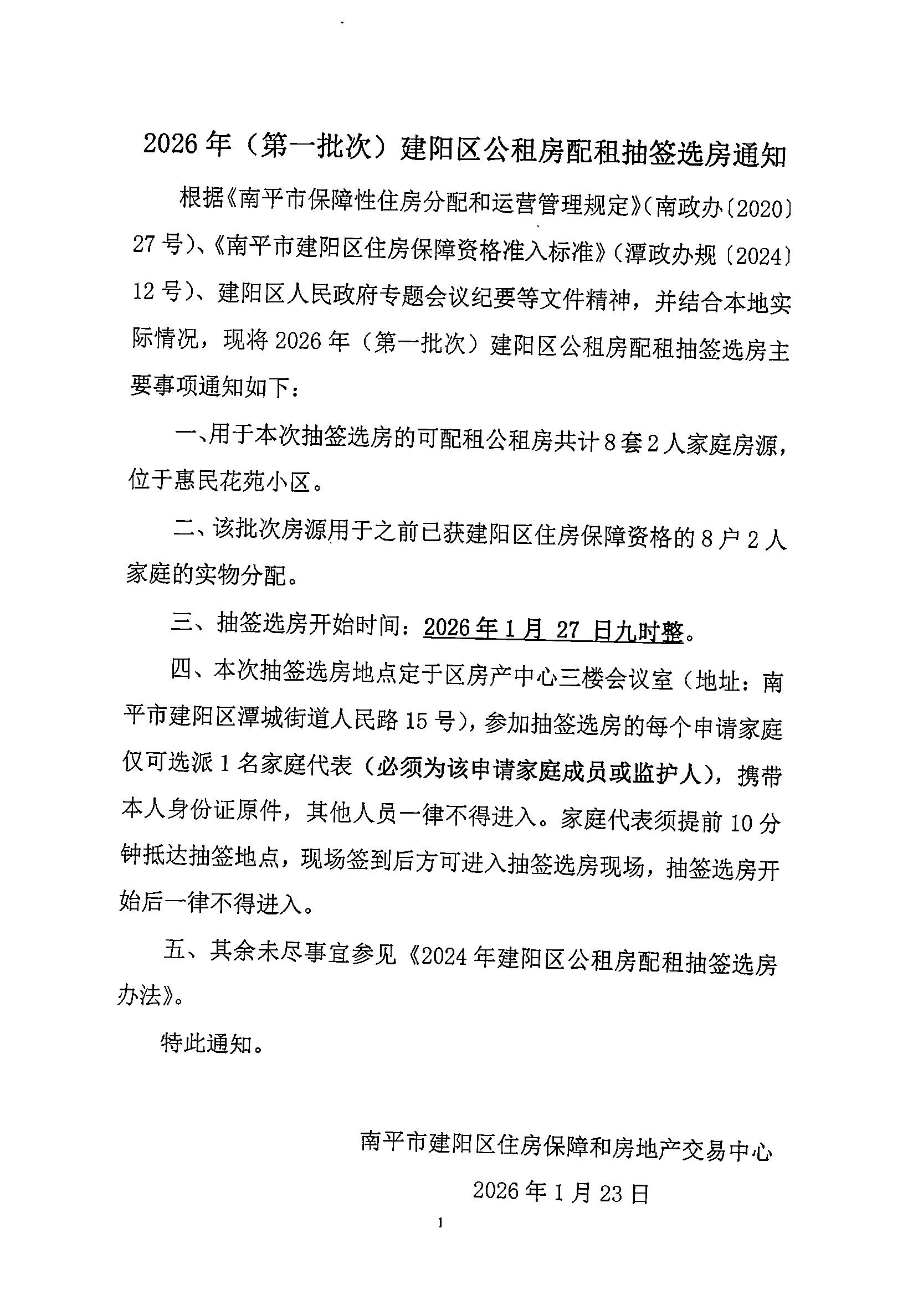 2026年(第一批次)建阳区公租房配租抽签选房通知