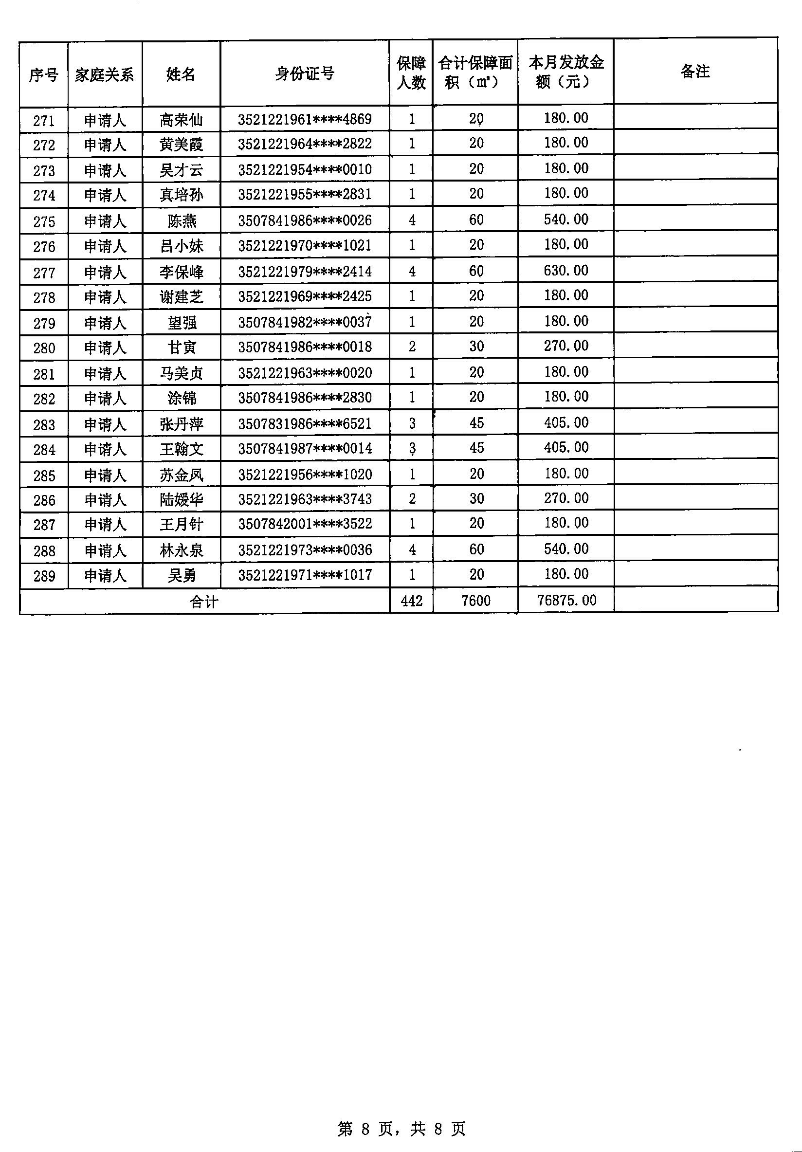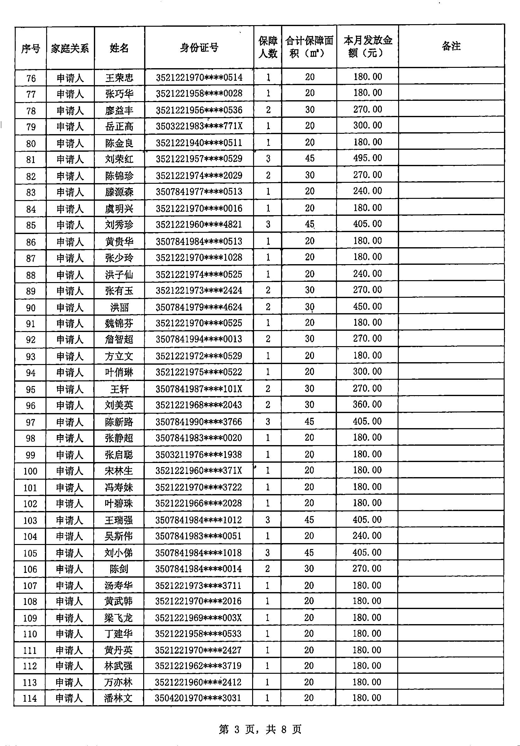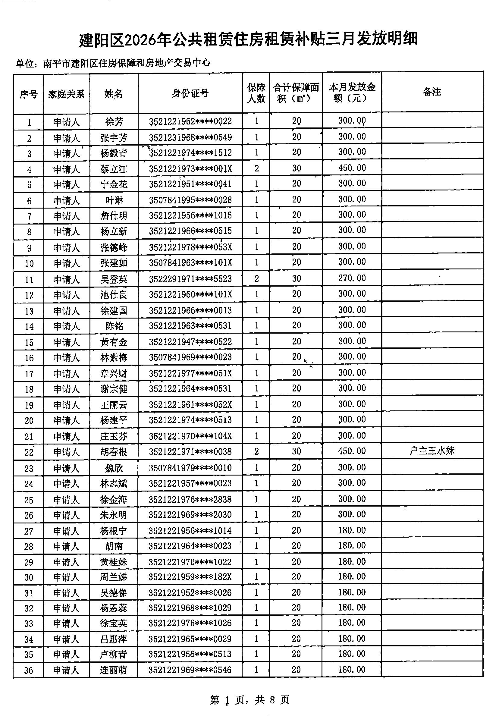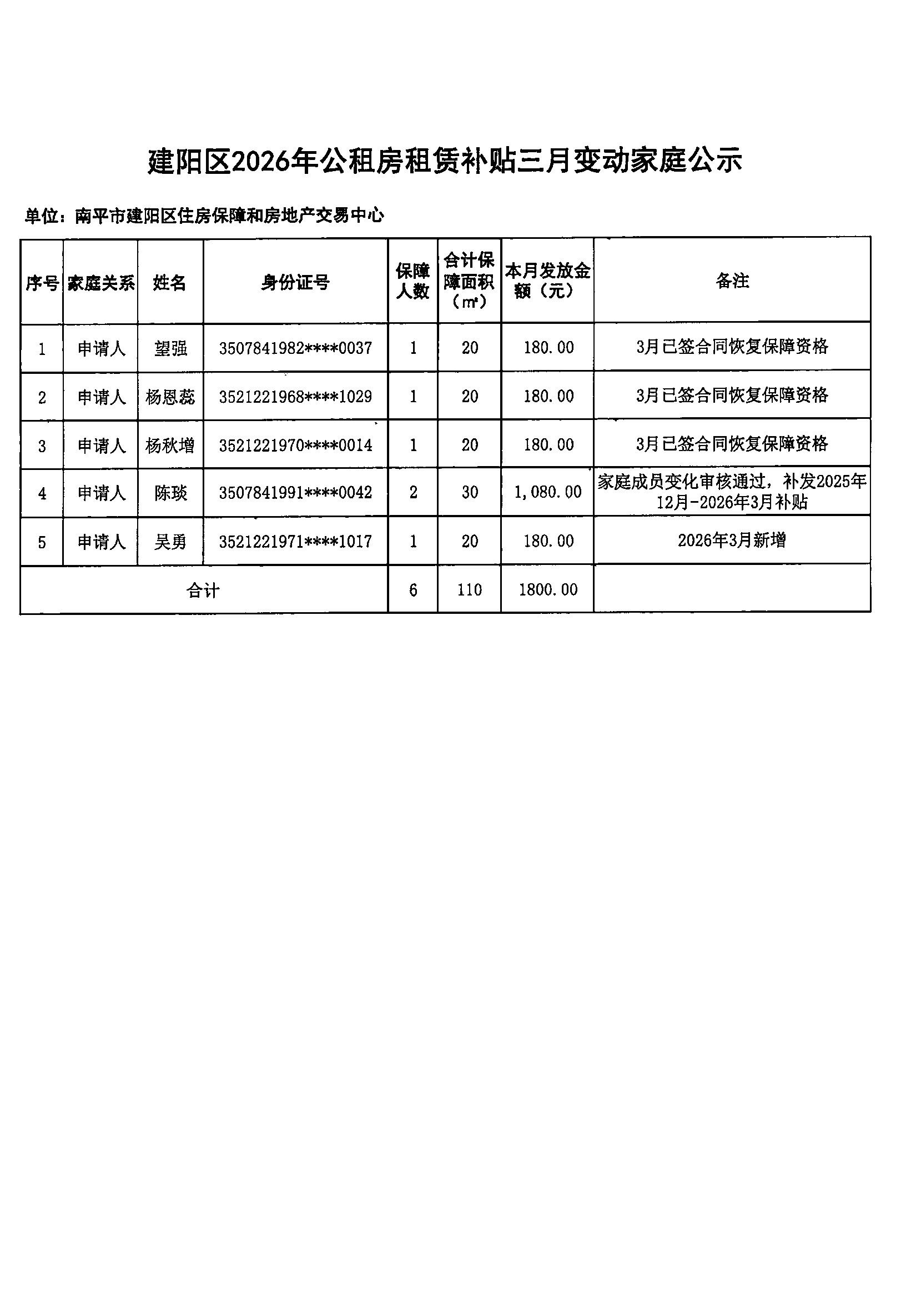 建阳区2026年公共租赁住房租赁补贴三月发放明细