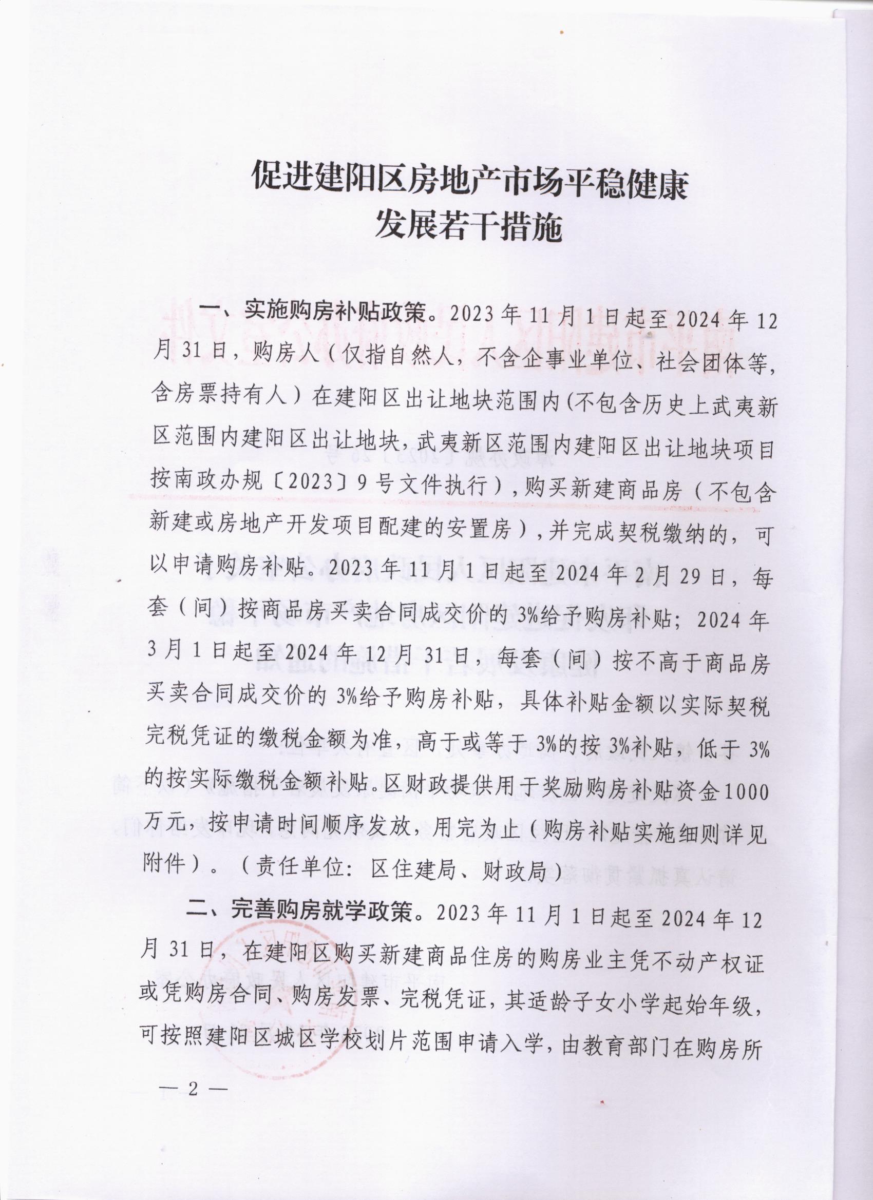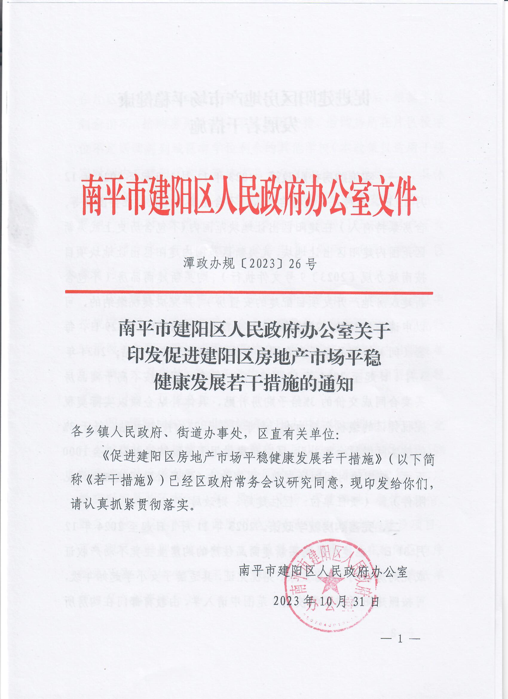 南平市建阳区人民政府关于印发促进建阳区房地产市场平稳健康发展若干措施的通知