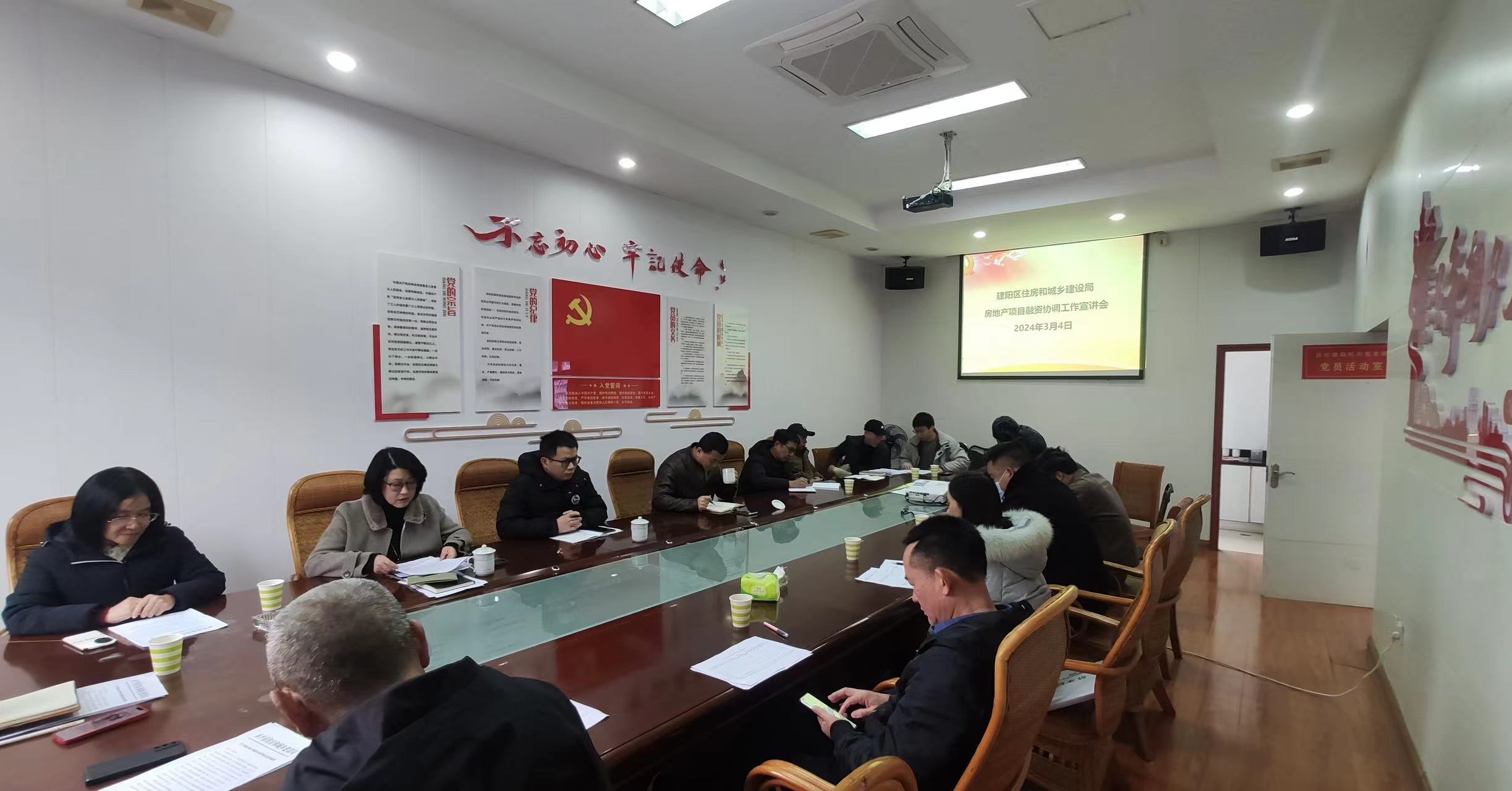 自1月份城市房地产融资协调机制工作部署以来,各地和相关金融机构迅速行动,建机制、提名单、抓落实,工作取得良好开局。为发挥城市人民政府牵头协调作用,因城施策用好政策工具箱,更加精准支持房地产项目合理融资需求,促进房地产市场平稳健康发展,3月4日上午,建阳区住建局举办了房地产项目融资协调工作宣讲会。银保监组、9家房地产开发企业共计十余人参会,区住建局总工张福明主持会议。
